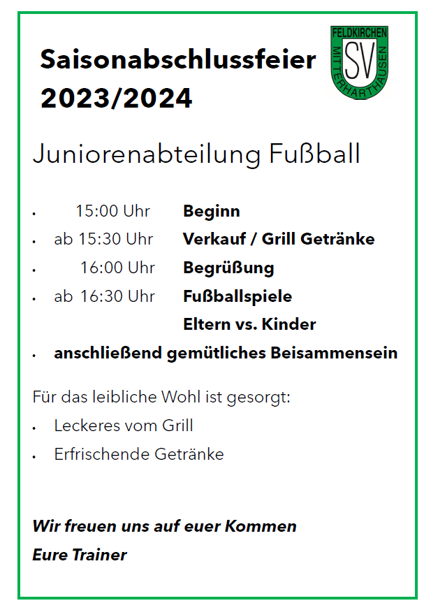 wir laden euch und eure Familien herzlich ein, an unserer diesjährigen Saisonabschlussfeier teilzunehmen.